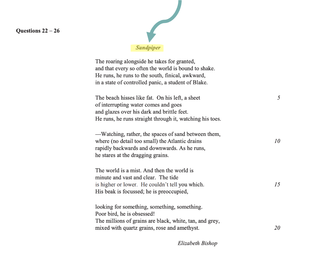 For example, in the GAMSAT’s practice materials there’s a poem titled Sandpiper.